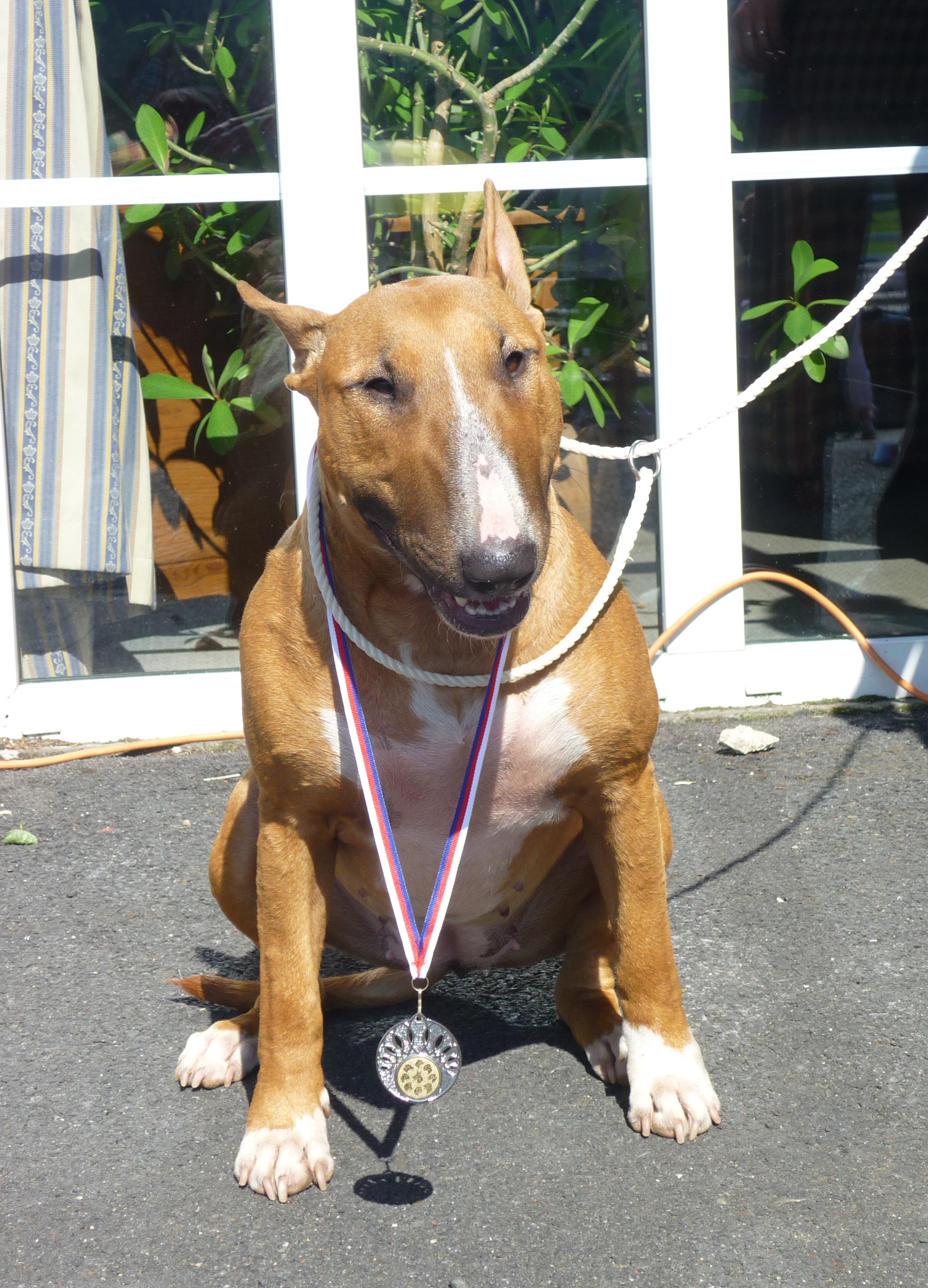 5.5.2012 jsme vyjeli na MVP do Prahy. Casi z mezitřídy odešla s hodnocením V2, res. CAC a posudkem: téměř 2letá písková fena, výborný chrup, typická hlava, oko, ucho, správný formát, zatím užší přední i zadní frontou, nezcela správné úhlení končetin, pěkný pohyb. Posuzovatel Petr Broukal.