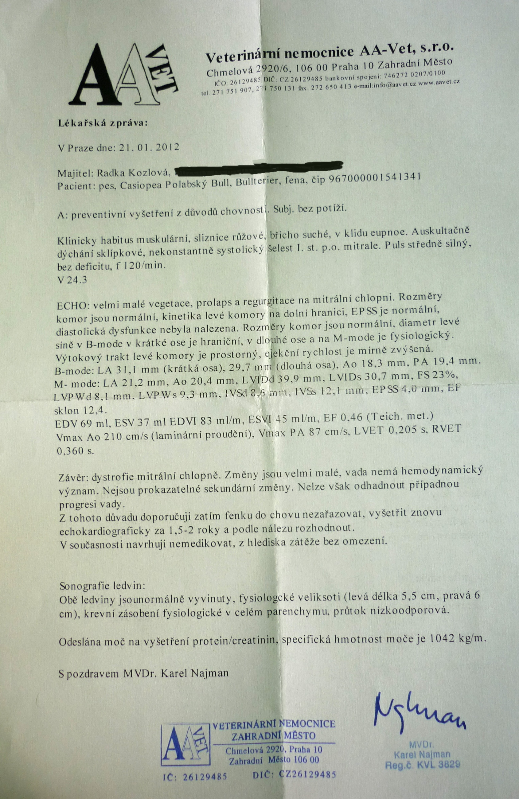 20.1.2012 jsme byli na pražské veterinární klinice AA Vet kvůli vyšetření srdíčka a ledvin. Výsledek zde:
